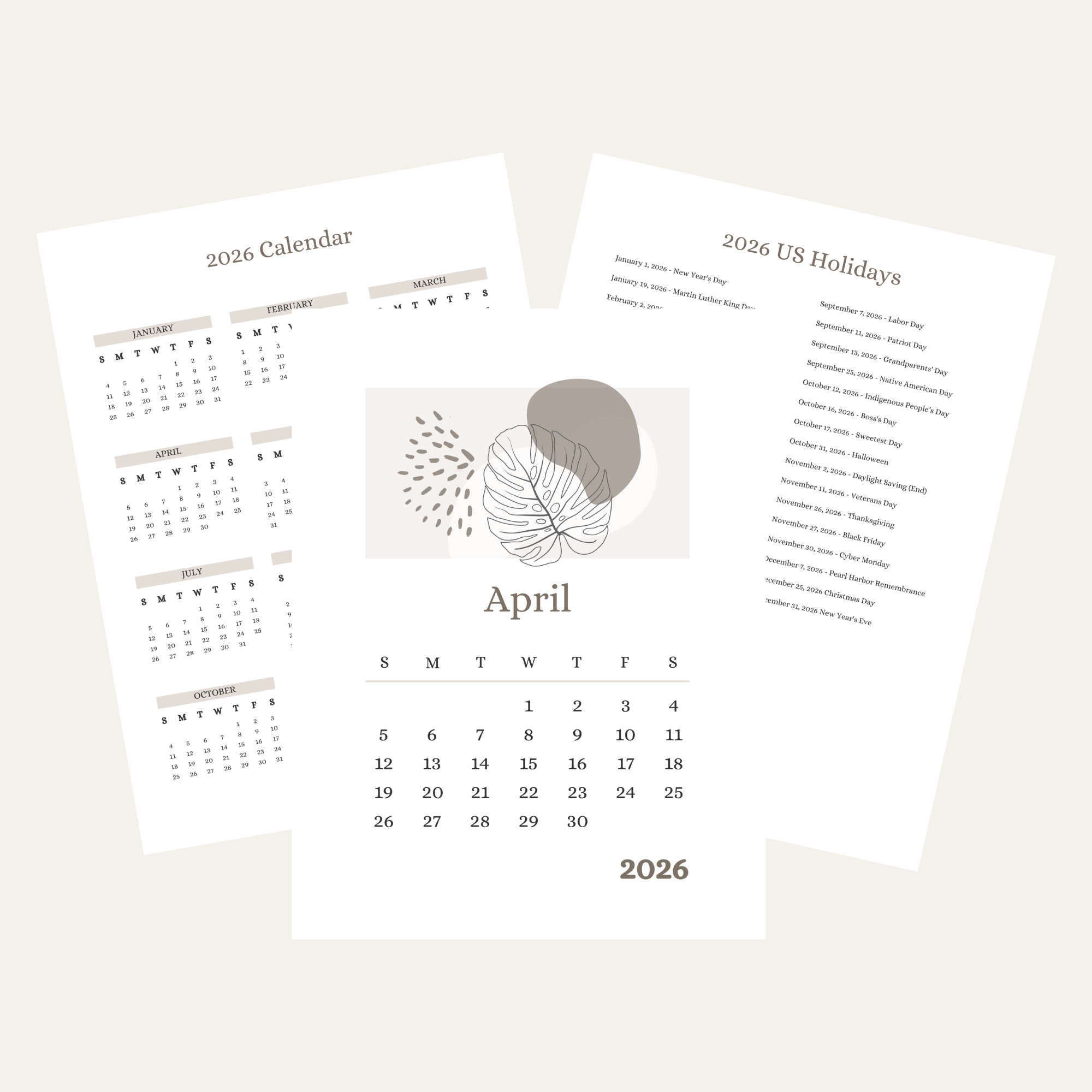 - One high quality (300dpi) PDF printable calendar page for April
